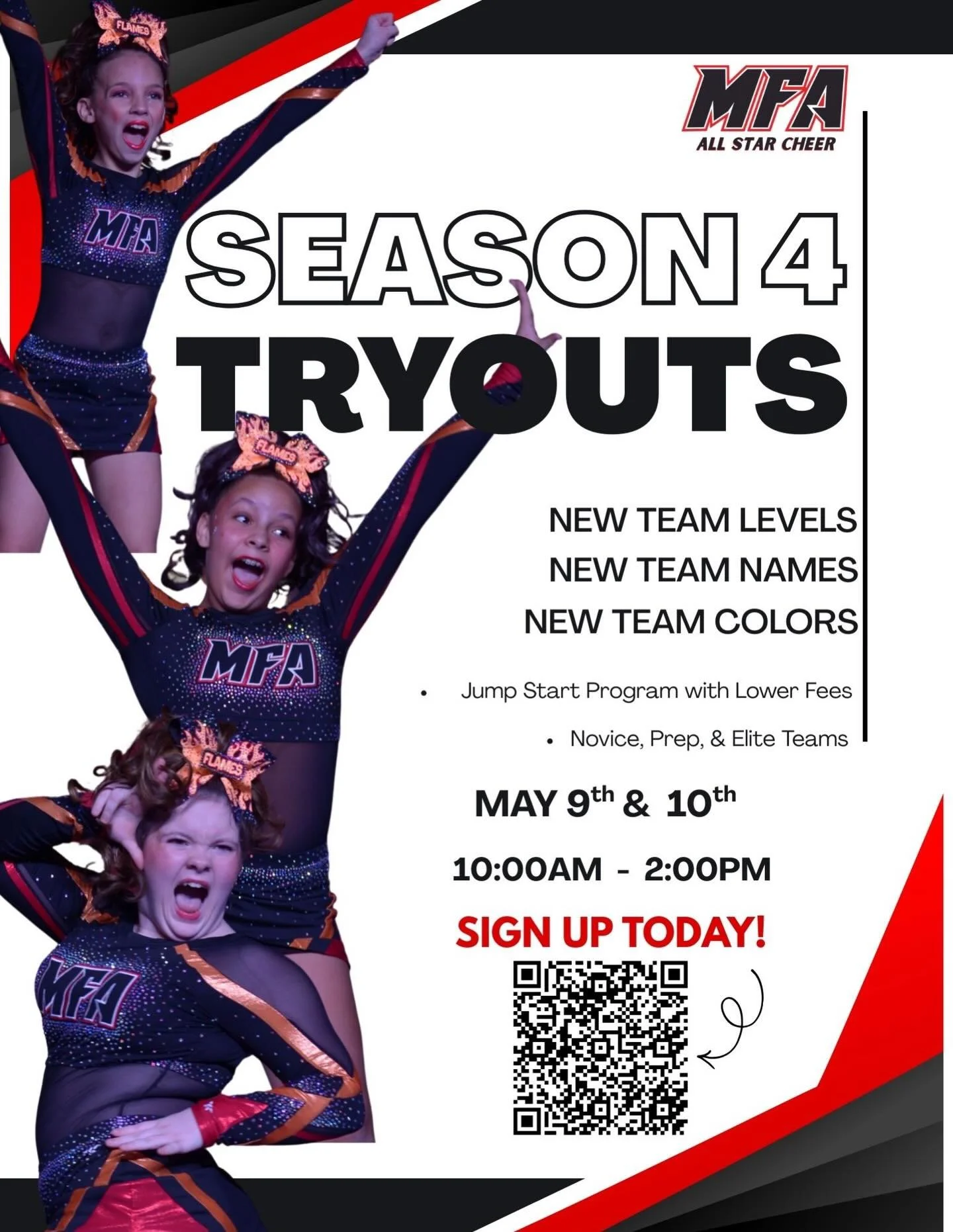 Whether your athlete is brand new to cheer or an experienced competitor, there’s a place for them at MFA.This season is bringing BIG changes and BIG opportunities including: